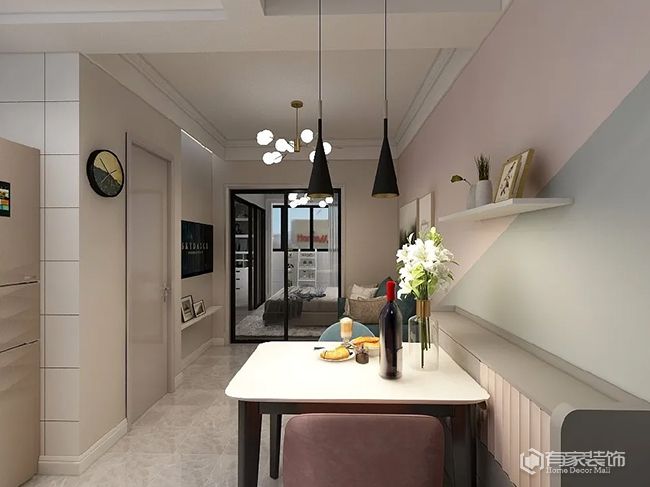簡單來說,不再具體劃分客廳和餐廳??蛷d與餐廳一體式設(shè)計,也讓整個空間更加寬敞大方。對于小戶型餐廳的設(shè)計問題,小餐桌也是一個不錯選擇。小餐廳配小餐桌,空間設(shè)計更合理。很多時候,餐廳空間之所以顯擁擠,就是餐桌買大了。值得一提的是,餐廳空間不是很大時,建議取消餐邊柜,用來優(yōu)化用餐空間與動線。畢竟,即便是定制餐邊柜,也會占據(jù)一定空間。除了以上幾種方案之外,餐桌靠墻擺放也是折中選擇。較之傳統(tǒng)居中擺放,無疑是節(jié)省空間。怕朋友來了不夠坐?試試將過道空間納入餐廳。人多了,把餐桌挪出來,臨時占用部分過道。