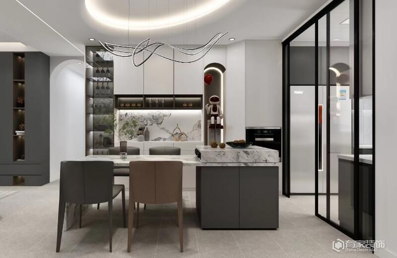 如何布局餐邊柜更實用?首先,就是豪華的獨立餐邊柜。一字型布局:沿任意一面墻設置,與餐桌平行或垂直,根據空間特點豐富設計形式。L型布局:從墻角延伸,增加使用臺面與收納空間,完善餐廳功能。餐邊柜+冰箱,采用嵌入式設計,要注意根據冰箱寬度調整餐邊柜部分柜子的寬度。廈門室內家裝公司考慮在餐邊柜中增加茶水吧等功能區(qū)域,提高空間利用率和整體美觀性。